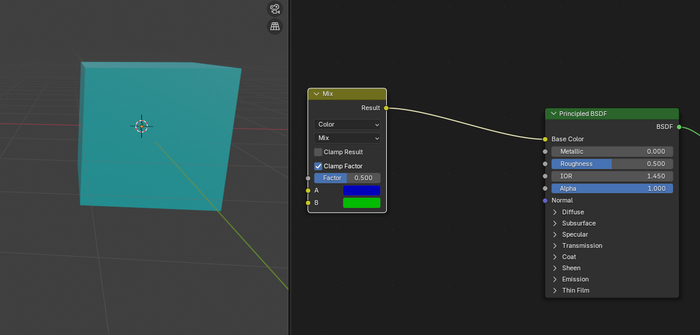 Хотим добавить два цвета? Нам тут поможет нода Mix Color