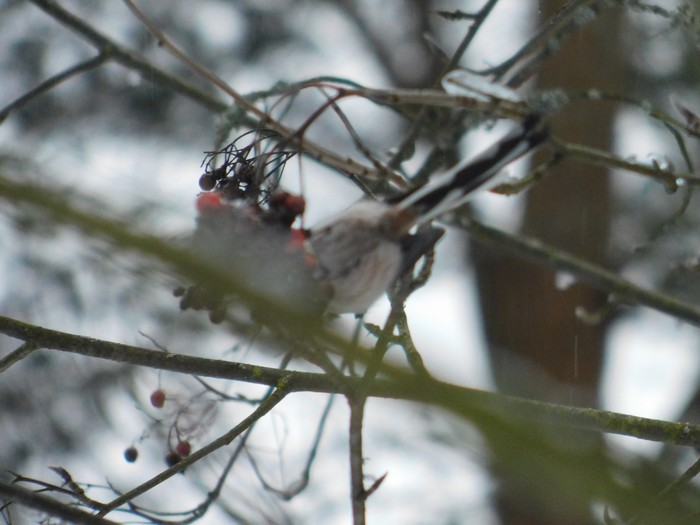 Пошли гулять в Сосновку и увидели в большой стайке синиц несколько ополовников. Ещё их называют длиннохвостые синицы. Встречаются они у нас не часто. За два года видим их второй раз. Прошлый раз это было ближе к весне. Они очень шустрые. Фоток получилось мало. Поймать их в объектив почти так же сложно, как лазоревок или корольков.