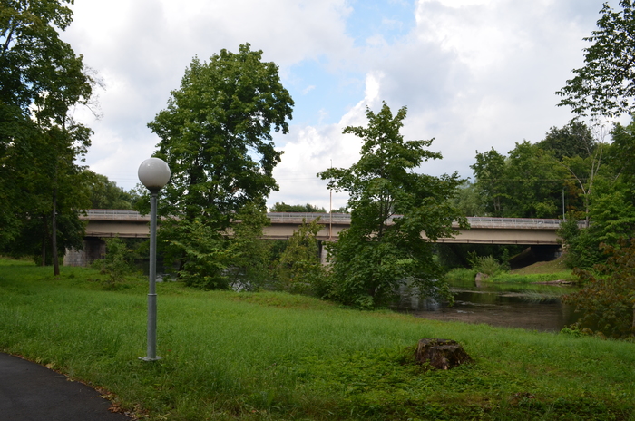 В такси я думал о предстоящей дороге длиной под 800 километров и вспоминал, как Миша и Диана (наши товарищи и спутники) шутили над моим желанием пообедать непременно в Опочке. Не могу сказать, что с этим городом у меня были связаны какие-то особенные чувства. Даже тот факт, что «путешествие в Опочку» в стихотворении «Я вас люблю, хоть я бешусь» упоминает Пушкин, не особенно волновало моё сердце. Скорее, на примере Опочки я пытался объяснить своим друзьям, что даже технические (а потому неизбежные) остановки стоит запланировать в тех местах, где мы можем что-то увидеть. В этом случае я планировал совместить обед и просмотр краснокирпичного здания технического училища, которое, как утверждают путеводители, совмещает в себе черты готические, древнерусские и классические, но в то же время выполнено в промышленном стиле. Если уж нам предстояло совершить грех чревоугодия, мы просто не могли позволить себе сделать это в месте далеком от этого (в самом лучшем смысле слова) Франкенштейна.