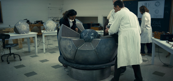 За нагнетание атмосферы и напряженности, как всегда великолепное у Нолана, на этот раз отвечает композитор Людвиг Йоранссон, максимально использующий струнные инструменты и какой-то большей душевностью, что ли, отличающийся от Ханса Циммера. Это очень важный момент, потому что впервые кроме технической совершенности картинки, мы можем нащупать пульс в фильме Нолана и сопереживать вместе с главным героем. И надо сказать герой этот изображен как противоречивая фигура, постоянно балансирующий между тщеславием и ответственностью за свое детище. Безусловное достижение режиссера, построившего драму не вокруг положительного героя, а персонажа с целым набором отталкивающих характеристик, но который уже тогда отчетливо понимал то, что каждый из нас тревожно чувствует сейчас: мы как никогда близки к глобальной катастрофе, способной разрушить весь наш мир.