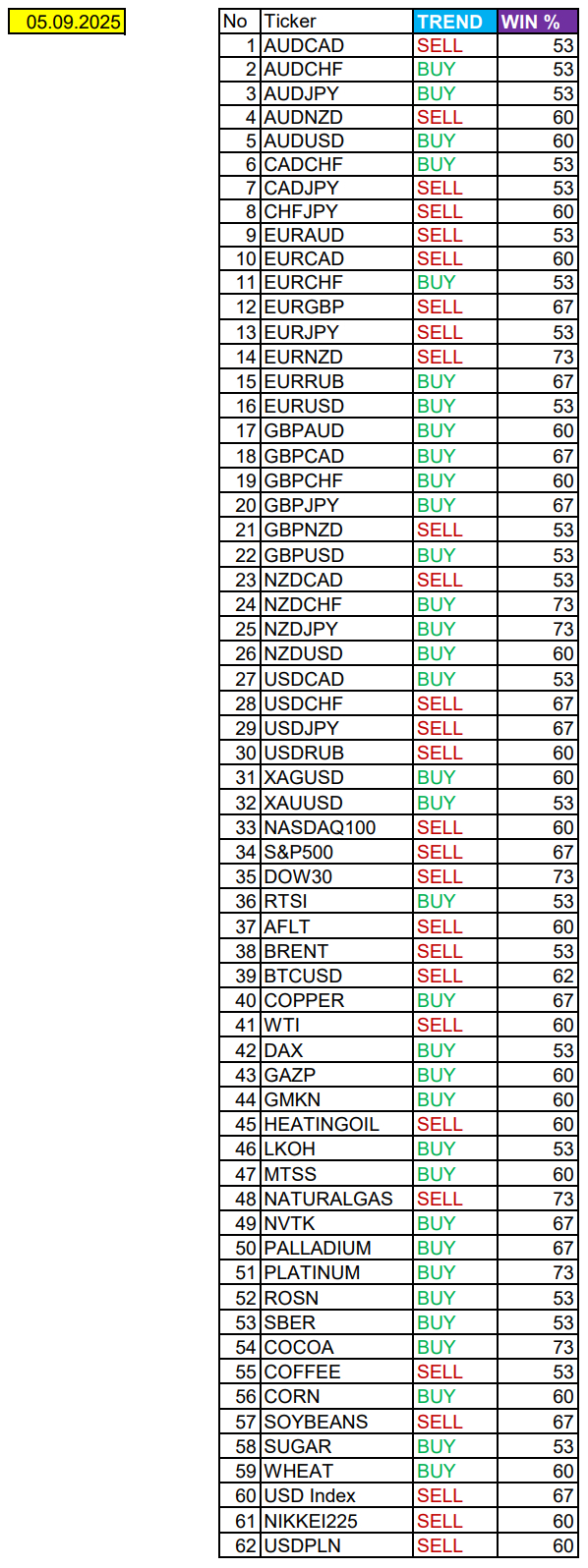 Очередные сезонные тенденции на Пятницу 05 Сентября 2025 по основным мажорам финансовых рынков.