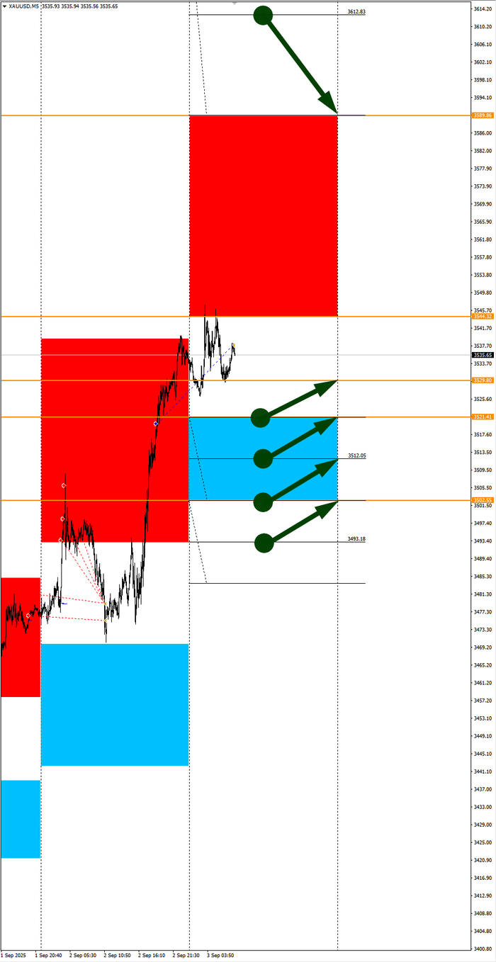 Зона покупок 3542,40-3509,44. Часть покупок отработали на азии от уровня 3542,40 с целью 3552,61. Новые покупки ожидаем от уровня 3525,97 и ниже с целями на графике. Покупки в приоритете пока фон доллара США слабый