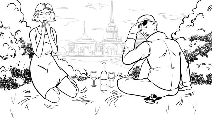Даже место было подобрано с учетом будущих бесчинств. В парке Горького мы обнаружили уютный закуток с многообещающим потенциалом. С трех сторон нас окружал густой кустарник, впереди открывался шикарный романтический вид на пруд с остатками статуи и заката. Мы разложили свои французские ништяки, уселись на траву и оба мысленно спросили себя — через сколько оно случится?