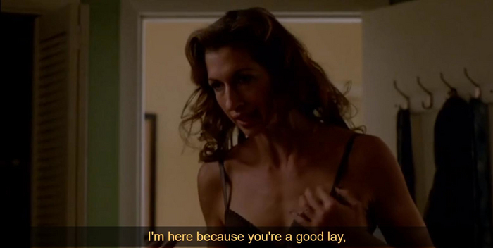 I work for a sleazebag corporation, and I am hate-fucking a dead-eyed, anorexic crone... who's the only person I can talk to. - Я работаю на сомнительную корпорацию, трахаюсь из ненависти с анорексичной старой крагой, кто - единственный человек, с которым могу поговорить.