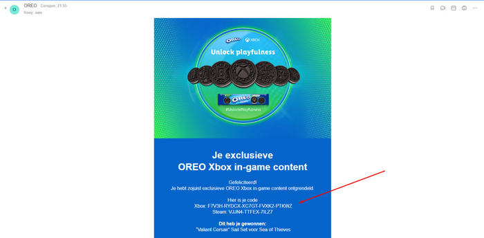 💁🏻♂️ Не знаю будет ли полезна данная публикация, но знаю, что очень много людей, которые обожают квесты и не против развлечь себя перед сном, поэтому предлагаю вам получить скины, так как OREO сделали коллаборация с Xbox и раздают коды для активации скинов в трех играх: Halo Infinite, Forza Horizon 5 и Sea of Thieves, если вы играете в одну из этих игр, тогда данная публикация для вас, лично я забрал скин корабля для Sea of Thieves, но вы можете получить сразу 3 скина, @alllhimic постарался сделать для вас максимально понятную публикацию.