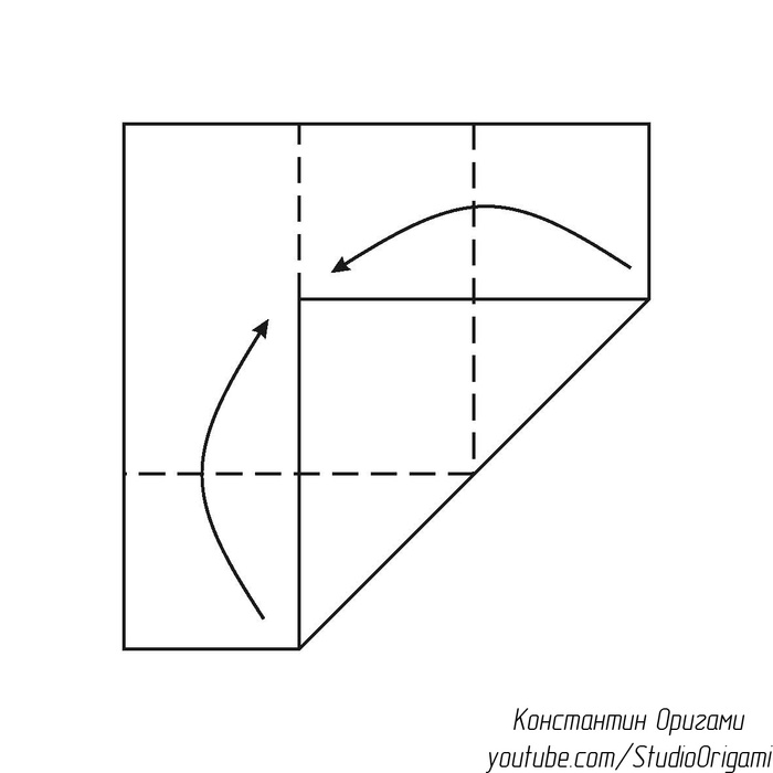 Для оригами используется лист бумаги размером 21х21 см, плотностью 80 г/кв.м. Схема сборки представлена ниже: