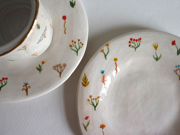 И вот относительно недавно, родители прислали мне купленые тарелочки, которые кто-то откопал на Сахалине. И я подумала, что неплохо было бы оцифровать (читай перевести в вектор) эти узоры, чтоб потом замутить с ними принты аля Карафутянский шмот.