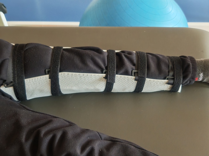 Особенностью разработки является возможность многократной коррекции степени фиксации в процессе лечения. По мере уменьшения посттравматического отека врач может повторно прогреть ортез, обеспечивая его дополнительную усадку и поддерживая оптимальное давление на ткани. Это решает одну из основных проблем традиционного гипсования, когда после спадания отека повязка перестает выполнять свою фиксирующую функцию.