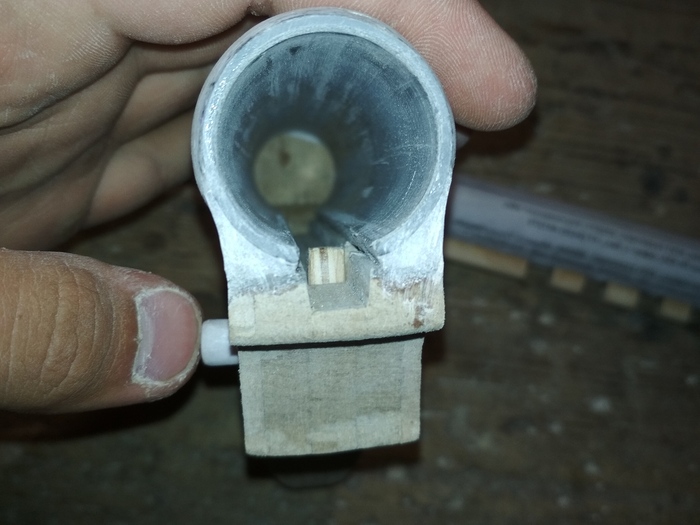 Самое сложное в поделке из дерева - затвор. Нужно избегать больших щелей между рамкой и главным механизмом, в то же время добиться безперебойного движения без лишнего трения, которое после покраски может вообще всё испортить. Также затвор своей передней частью должен свободно проходить через ствол и внутреннюю выемку рамки.