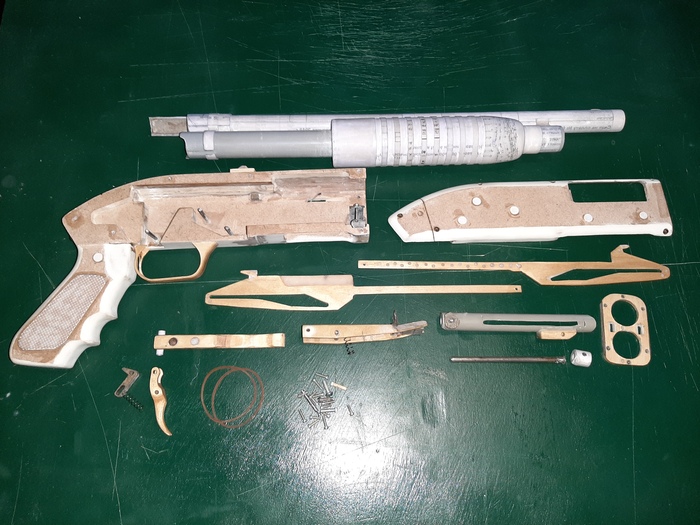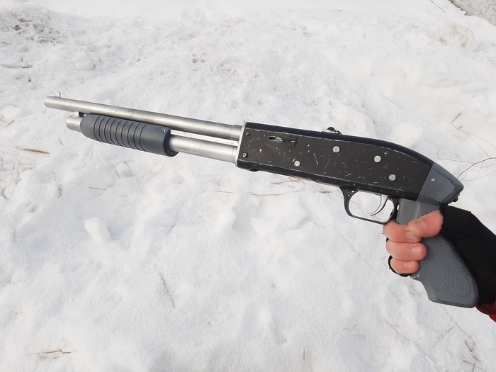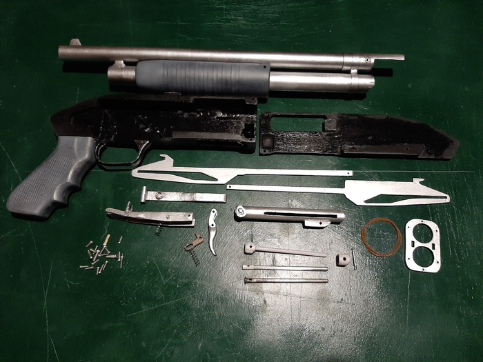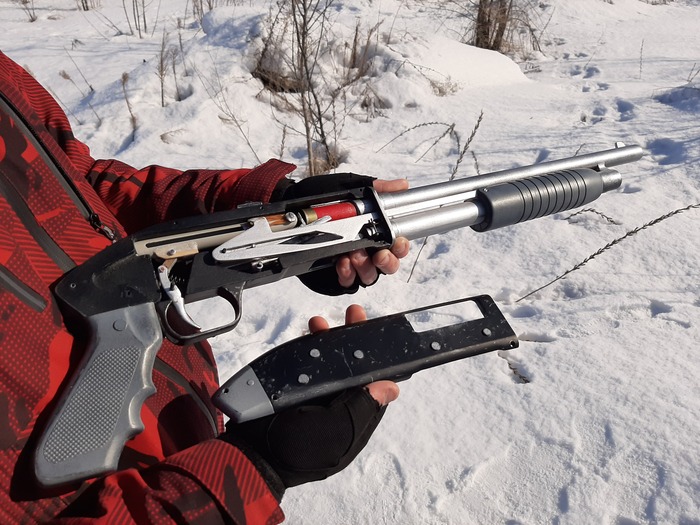Всем привет! Сегодня покажу свою самую сложную и долгую работу за всё время моего рукоделия. Это макет дробовика Mossberg Maverick 88, или как он называется в игре Сталкер - Чейзер-13 с возможностью псевдострельбы пластиковыми шариками, экстракцией гильз и разборкой. Изготавливал в начале 22 года.