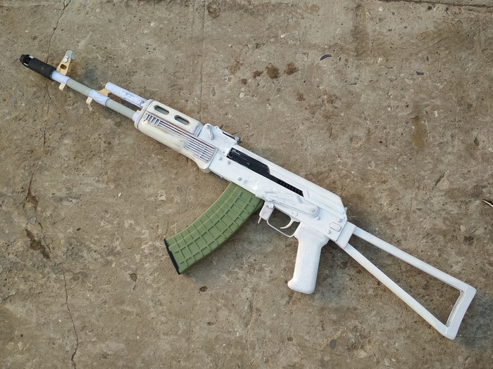 Когда ствольная коробка была собрана, я начал разбираться с механизмами. Нужно было реализовать саму стрельбу пластиковыми шариками, перезарядку и выброс гильз, как в настоящем образце и чтобы это всё разбиралось для ремонта.