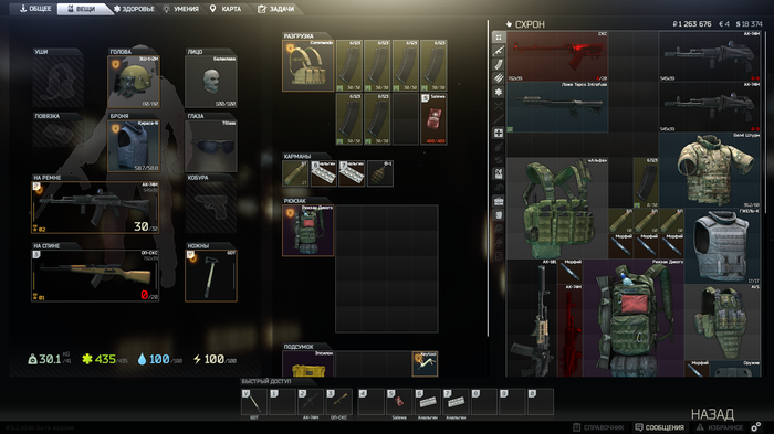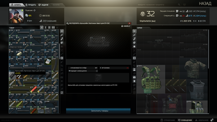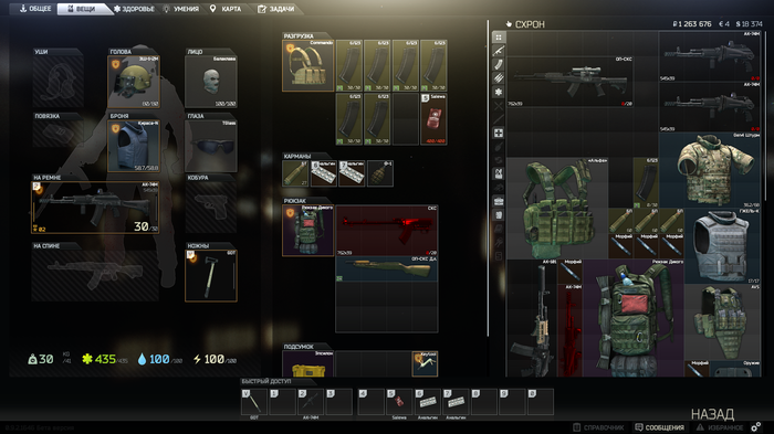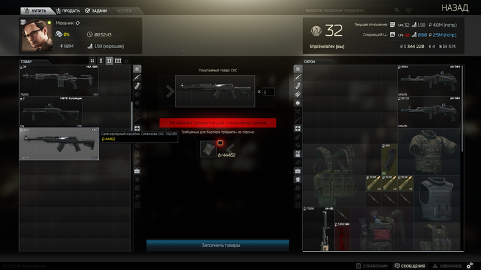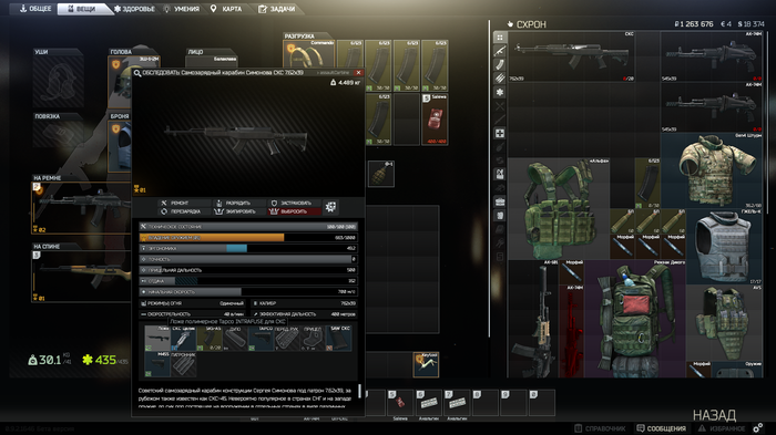 Исходя из данной информации мы приходим к выводу, что неважно какое ложе установлено у нас, важно то, какая модификация оружия перед нами. И если вам очень нравится СКС, то вы можете собрать ОП-СКС в полимерном обвесе как сами, купив по отдельности части у торговцев, так и просто купив уже собранное оружие и заменив у него ствольную коробку со стволом. Для этого нам потребуется два СКС, это купленные или найденные в рейде ОП-СКС и СКС в полимерном обвесе, и несколько манипуляций. Для начала обследуем СКС и снимаем с него ложе нажав на него и перетащив на свободное место в схроне.