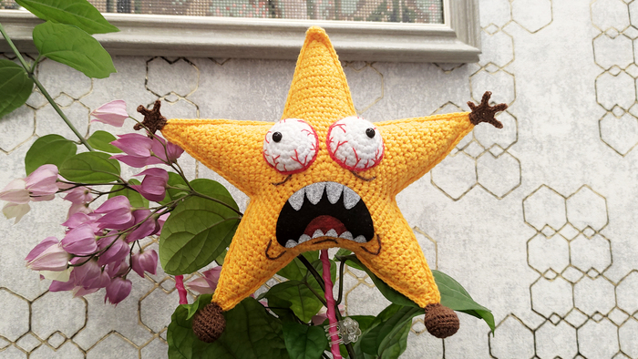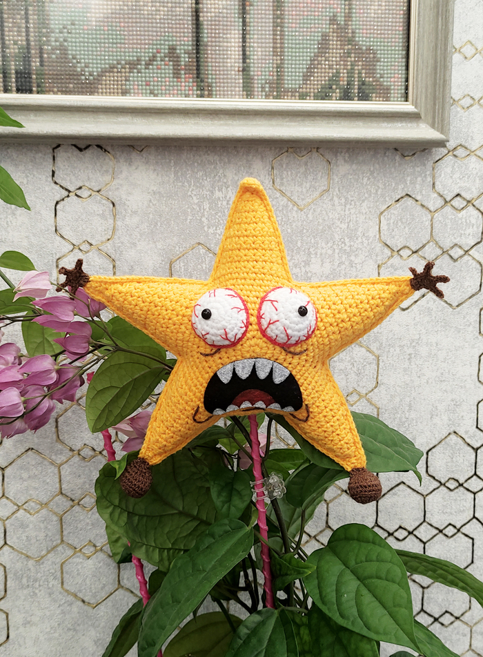 Звезда полностью связана, кроме рта. Это фетр, а зубы и язык нарисованы акриловыми красками.