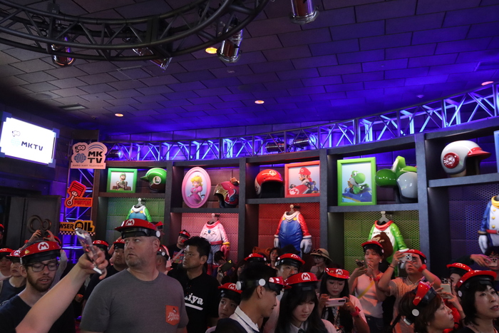 это спокойная поездка вокруг парка, очень красочно и интересно, сделано все очень красиво, затем мы пошли в очередь Mario kart,
