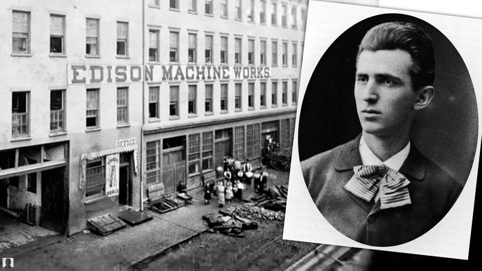 Руководителем Теслы в Париже был Чарльз Батчелор, соратник и близкий друг Эдисона. Когда пришло его время возвращаться в США, он взял с собой Николу Теслу. Эдисон уже тогда был знаменитым изобретателем, и Тесла был рад работать с ним, но там он проработал недолго, всего полгода. Точная причина неизвестна, но одна из версий — конфликт из-за денег. Руководство компании предложило премию в размере 50 000$ (сейчас это примерно 1,6 $ млн.) за усовершенствование машин. Тесла предложил несколько решений, некоторые из которых были приняты в работу. Когда же он напомнил о деньгах, то ему сказали, что это была шутка такая, и денег не дали. Следующей остановкой на витиеватом карьерном пути Теслы было рытье канав за 2$ в день.