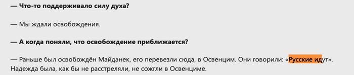 В блоке 32, в котором мы находились, были также русские военнопленные, которые отказались работать добровольно на заводах по производству боеприпасов. В связи с этим они были помещены в лагерь. Поскольку они продолжали отказываться работать, их подвергали всяческим издевательствам: заставляли стоять целый день перед бараком, не давая пищи.