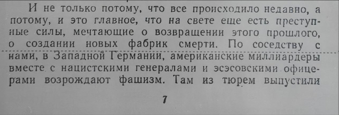 На первых страницах, издание 60-х годов. Описывается это покрывательство западных капиталистов военных преступников (в том числе и Йозефа Менгеле)