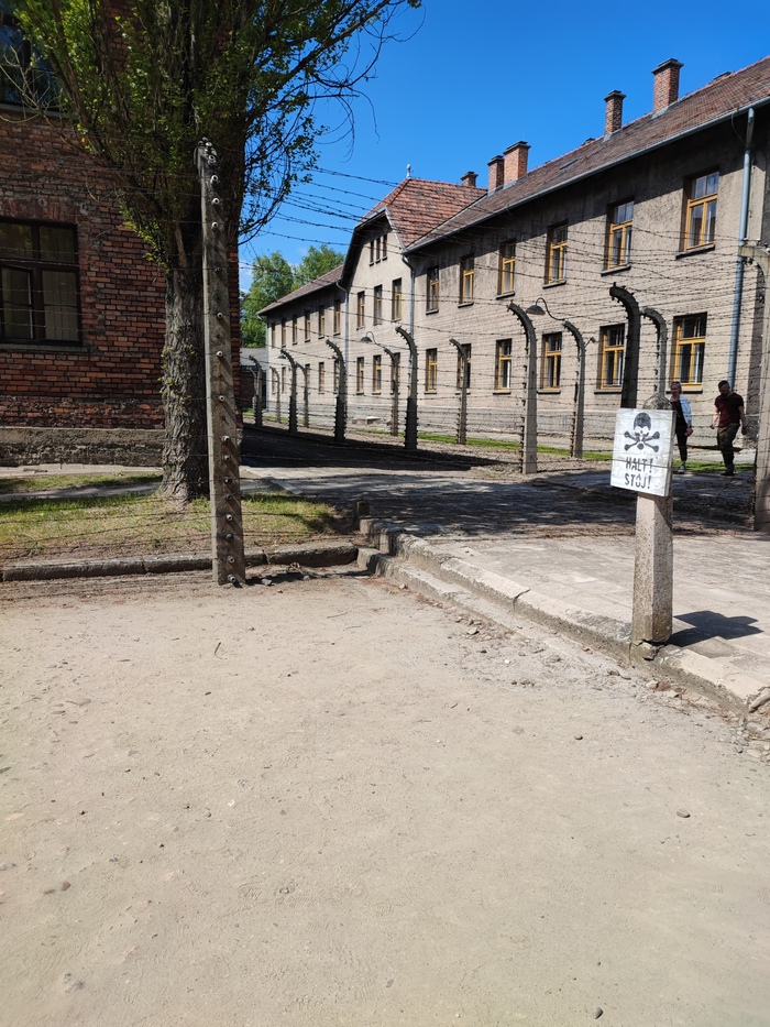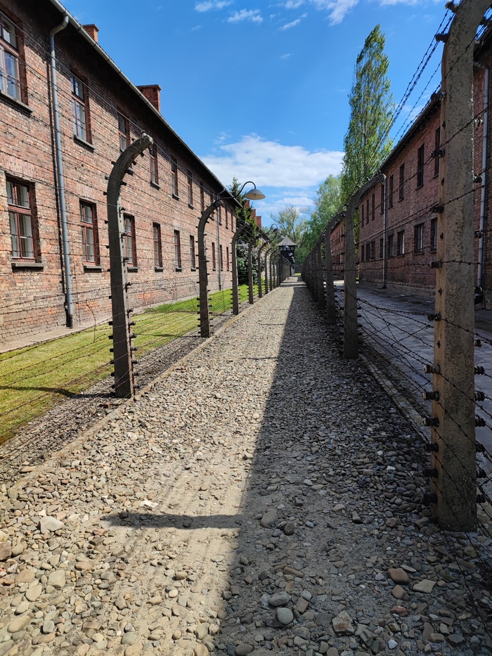 Весной 2023 года мы с подругой сподобились наконец-таки выбраться в зловещий Аушвиц-Биркенау - всемирно известный лагерь смерти, расположенный в небольшом славном городке на юге Польши, в Освенциме. Вот, кстати, вид, который открывается на мосту в конце города, по дороге в сам концентрационный лагерь. Вдалеке виднеются синеватые туманные горы, да и в целом на улице стоит прекрасная майская погода, даже не верится, что примерно в километре от этой красоты находится массовое кладбище, где в угоду нацизму нашли свой последний приют около полутора миллионов человек.