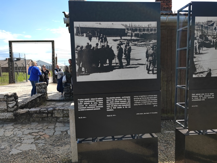 А вот рядышком, собственно, то самое место, где всех новоприбывших узников сортировал нацистский врач. Тех людей, кто мог работать, забирали в бараки, а тех, кто не прошел отбор - сжигали в печах. Иными словами, здесь устроили своеобразную Спарту, где отбраковывали всех калек, больных и просто ослабевших людей.