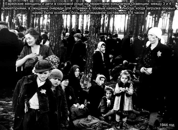 По прибытии поезда, первым делом людей распределяют на две колонны, которые хорошо видны на фото ниже. Мужчины отдельно, женщины отдельно с детьми. Чуть позже женскую колонну разделят еще на две... Женщины отдельно, дети отдельно. Для того, чтобы они не оказывали сопротивление, им очень дружелюбно рассказывают о необходимости прохождения санобработки от вшей и предлагают помыться горячей водой после дороги. Потом их всех приведут в два громадных помещения, в которых эти люди чуть позже, разденутся, а далее им предложат оставить свои вещи, за которыми они смогут вернуться через 15 минут. Потом их проводят в соседнее помещение, и дверь за ними закрывается.