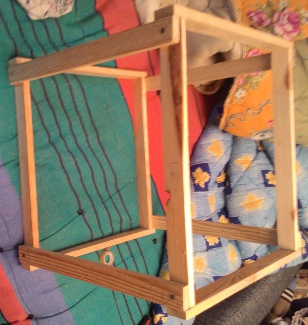 Дальше материал самой конструкции. После покупки холодильника года 3 назад остались транспортировочные планки, они пошли на каркас кубика (46*46*46см).