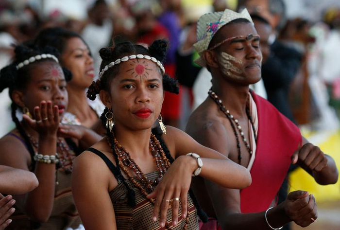 Однако тут есть нюанс. Принеся к Африке хорошую традицию мореходства, эти товарищи, как можно предположить, генетически сами себя изменили. Скоро они начали контактировать с негроидными народами банту с материка, и те радостно стали селиться к ним, жениться/выходить замуж и ассимилироваться. По внешности многих нынешних малагасийцев можно сказать, что изначальные носители их языка были весьма малочисленны и, оставшись доминантами в культуре и политике, значительно смешались с африканцами.