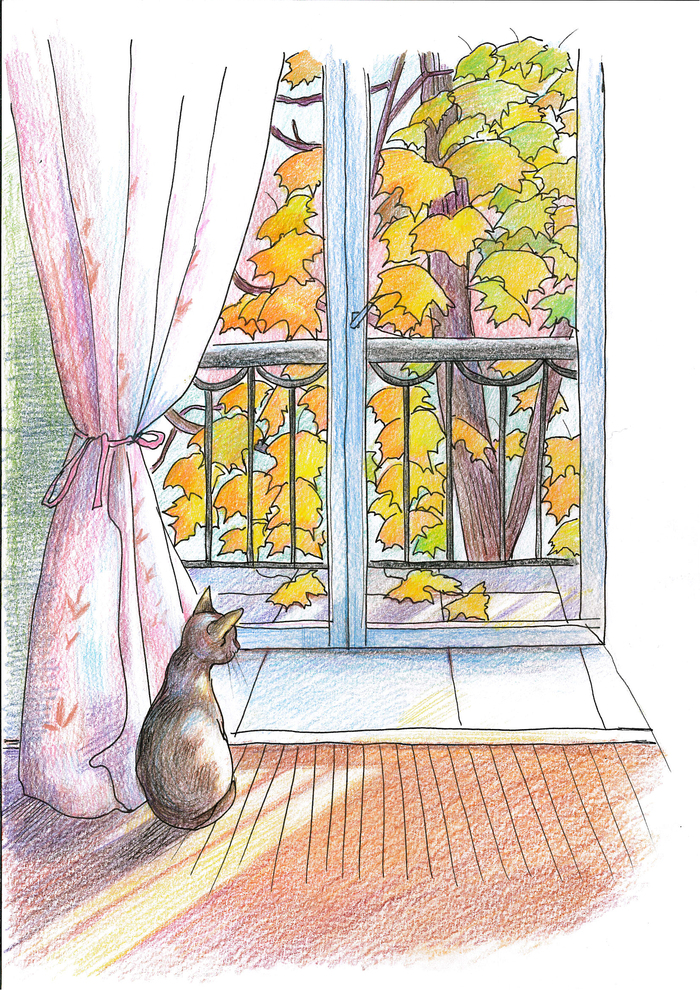 Каштанчик очень хорошо потрудился и собрал всю опавшую листву. Лишь бы ветер не разыгрался.