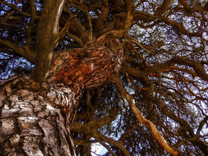 Необычная сосна, которая, конечно, считается священной. А необычна она тем, что такое огромное дерево выросло посреди абсолютно голых склонов.