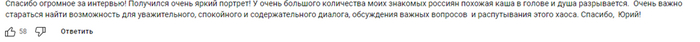 P.S. Я это еще к чему… Тут в паре прошлых постов я посмел задеть всю эту просвещенную (не нам чета) публику: Пугачева там, Макаревич, Ваня Алексеев (особенно) и т.д. Конечно тут же гневные вопли полетели: ты завидуешь; а сам ты что сделал; а песни послушай; а че сказать хотел; цитаты я какие-то переврал; ну и всякое такое «умное» (всего не читал). А сказать я хотел (для непонятливых повтор) ровно то, что я по этому поводу думаю (вам, конечно, не навязываю) - все вот эти вот ваши лидеры мнений, такие же как, раскрывшийся в этом ролике по полной, иноагент Юрий (который почему-то за светило журналистики котируется)… Вот тут проблема, потому как и назвать-то уже ничего не назовешь своими именами - уж так бдительно банят за каждый чих. Поэтому просто слова. Инфантильность, глупость, лицемерие, манипуляции. Просто пришли на ум… не знаю почему… Юрий как превью просто.