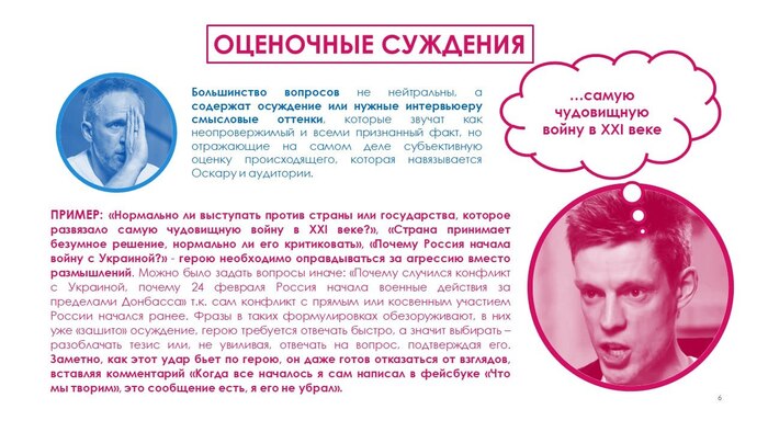 Вообще, думаю, многие задавались вопросом – почему это Юра про всю эту ситуацию (и около того) разговаривает только с одной стороной? Где же другая? Он же весь такой объективный и независимый (ха-ха). Вот например: почему он говорит про Донбасс и СВО с поэтессой Полозковой, которая никогда там не была, а не с поэтессой Долгаревой, которая оттуда не вылезает? Такая себе объективность, прямо скажем. Но Юра-то не дурак и понимает, что это все лажа. И совершенно почестному (вот те крест) приглашает обладателя иного мнения… Оскара, блин, Кучеру… Который, чуть не с первых строк, ожидаемо заявляет о своей слабой подкованности. Отличный выбор, Юра. Аплодирую стоя. Это как для спора о происхождении человека и эволюции зовут не Дробышевского, а…меня, например, и я там под искрометным натиском сижу мычу. Еще раз браво!