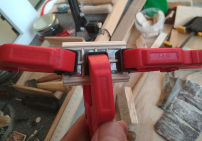 Из-за микроскопических неточностей в пилении неожиданно получились отличные соединения — тавровое и с заплечиком, сборка превосходно держалась и без клея.