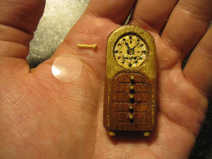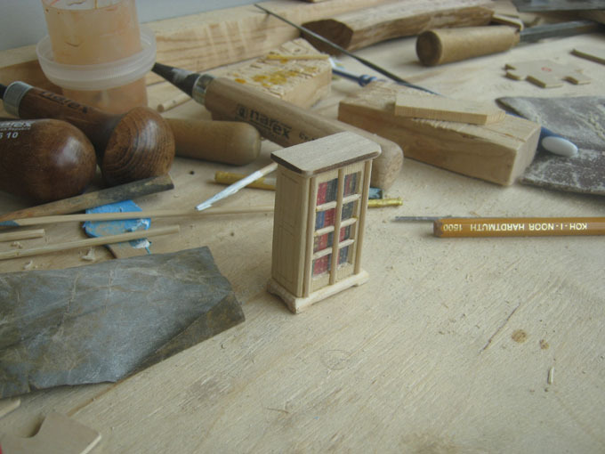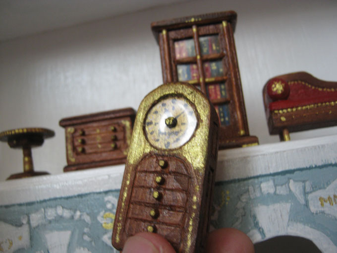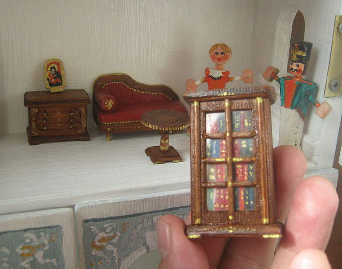 Книжный шкаф со "стеклом" из крышечки для сметаны (стекло в часах такое же).