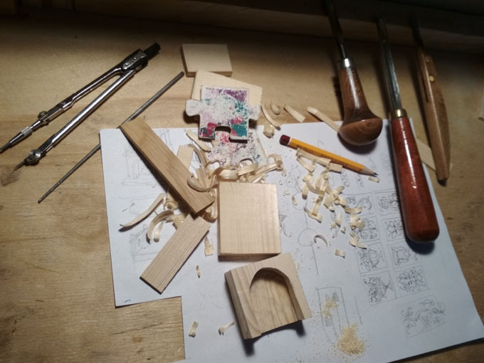 А еще Саша попросила сделать коня. За что люблю ее "заказы", что иногда они являются чистым ребусом! Как сделать коня так, чтобы он был и в стилистике, и в то же время, на него можно было бы сажать фигурку? Решение пришло довольно интересное, причем и в плане размещения на заготовке — разборный конь!