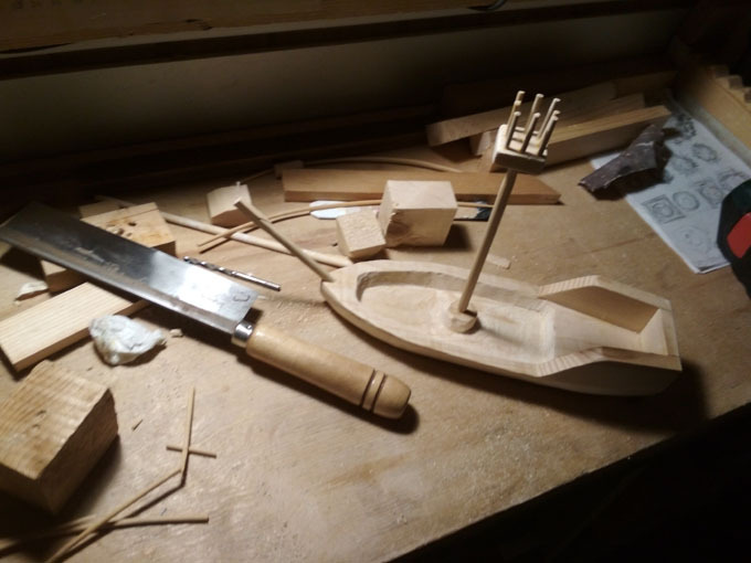 Как же при таком поместье и без яхты? Строим! Как раз под рукой нашлась и досочка от ящика.