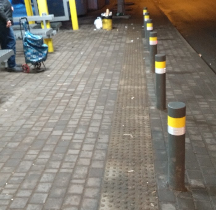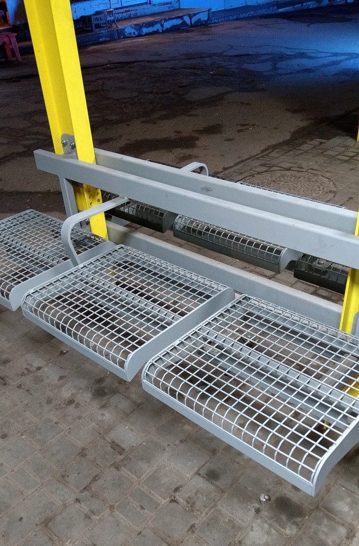 Такие вот столбики от мудаков, залетающих в остановки машинами. И резиновая пупырка, думаю, от подскальзывания.