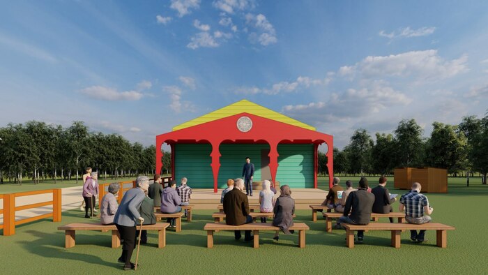 Я уже рассказывала, что ребята учились делать проекты архитектурные, для нашего села. И один из проектов был - сцена деревенского клуба. Вот, старый деревянный клуб, а сзади была кинобудка. По проекту её решили убрать, и сделать свободное место под сцену, а из локального взяли узор с какой-то утвари для стирки белья и узор резного буфета. Мне понравилось, что подумали