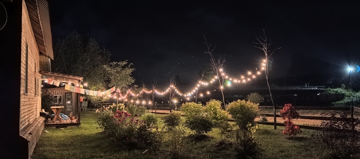 На террасе в доме у реки хорошо августовскими вечерами. Буду переделывать фальшдеревья, пока не успели вырасти настоящие.
