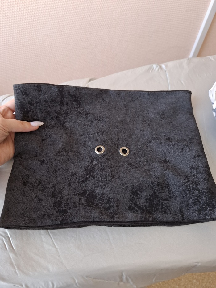 Сделала 2 прямоугольника 60 на 25 см. Отметила середину на футере. Вставила люверсы.