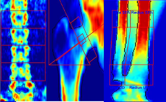 Рентгеновская денситометрия (плотностеизмерение в пеерводе на русский) - очень увлекательное исследование. Оно позволяет оценить минеральную плотность кости в конкретных локациях, чем отличается от обычного рентгена, где есть картинка, но нет расчетных данных. Локаций стандартно смотрят две, но при желании врачи сделают и другие расчеты. Но наивысшее значение имеют самые опасные зоны с точки зрения дальнейшей жизни человека - это шейка бедра и позвоночник. Потому что здоровый человек шейку бедра ломает с усилием, а человек с остеопорозом - легко. И легко превращается из активного в общем-то старика в полностью лежачего инвалида. И счастье, если смогут провести операцию по замене тазобедренного сустава - ортопеды говорят, что иногда ставить протез буквально не во что, из-за остеопороза кость крошится и не удерживает металл.