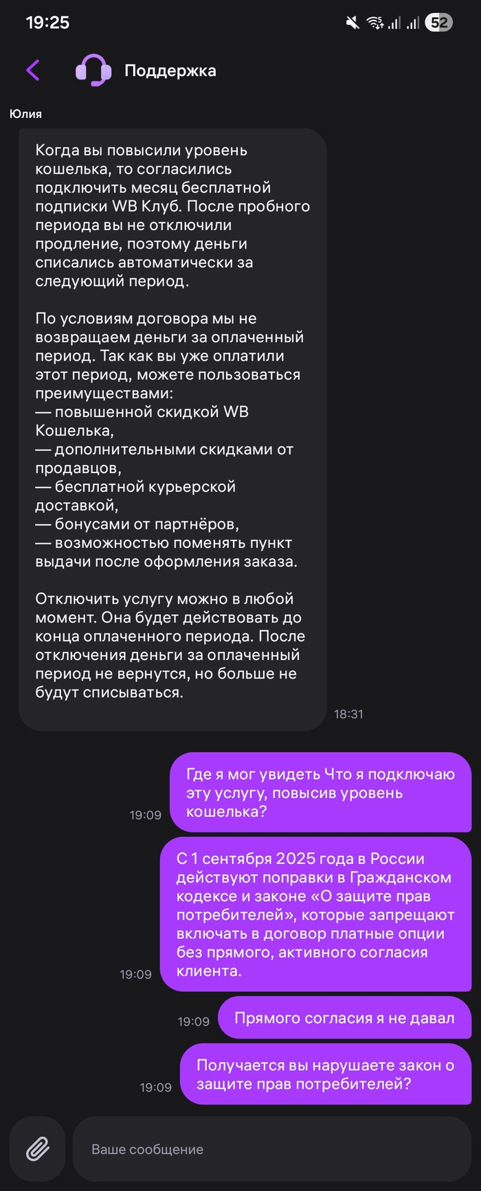 В непонятках пишу в поддержку ВБ, молчание. Иду отменяю подписку. Гуглю, оказывается проблема довольно массовая. Суть в оформлении подписки ягодками вам, о которой вы даже не слышали. Кому то ТП отвечает, что мол вы сами согласились на нее в подарок за 1р с последующей абоненткой в 199р после пробного периода. Проверил свои списания, нет нигде той самой 1р траты. Никто в принципе не предлагал оформить какую либо подписку.