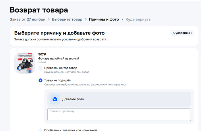 Я начинаю прорывать через барьер поддержки, которая помимо раздражающего бота закидывает меня шаблонными ответами. Наконец нарываюсь на оператора, который объясняет, мол наушники — это технически сложный товар, что верно и нужно пересоздать заявку и указать, что возврат по дефекту (ранее она была по причине "товар не подошел"), дал мне возможность создать новую заявку и тут продавец связывается со мной дабы уточнить город и сервисный центр. Он скидывает адрес сервисного центра куда я физически не могу добраться сейчас. Я предлагаю ему просто записать видео со звуком, но отказывается это принимать. В итоге я "купил" наушники с ужасным звуком за 5к рублей.