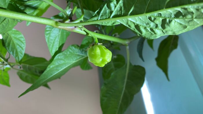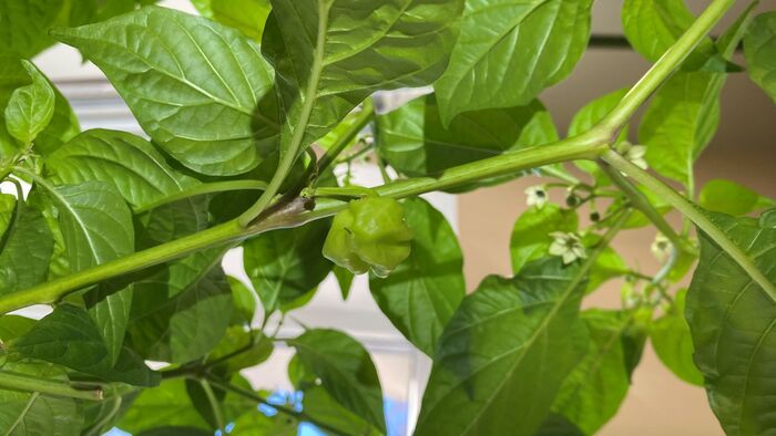 Сосланный в деревенскую ссылку Хабанеро красный тоже чувствует себя совершенно неплохо. И даже позволил собрать с себя первый (Карл!) урожай в 2026 году!