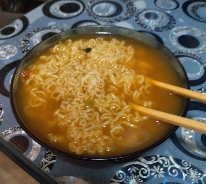 Заключение: лапша отличная, очень вкусная, средне острая, а главное не такая дорогая по сравнению с другими (в среднем стоит 120 рублей). Вкус кимчи присутствует. Она на равном уровне с нонгшимом: вкусная, острая и интересная. Рекомендую эту лапшу всем любителям острого или интересного рамёна. Приятного аппетита тем кто ест или будет есть!
