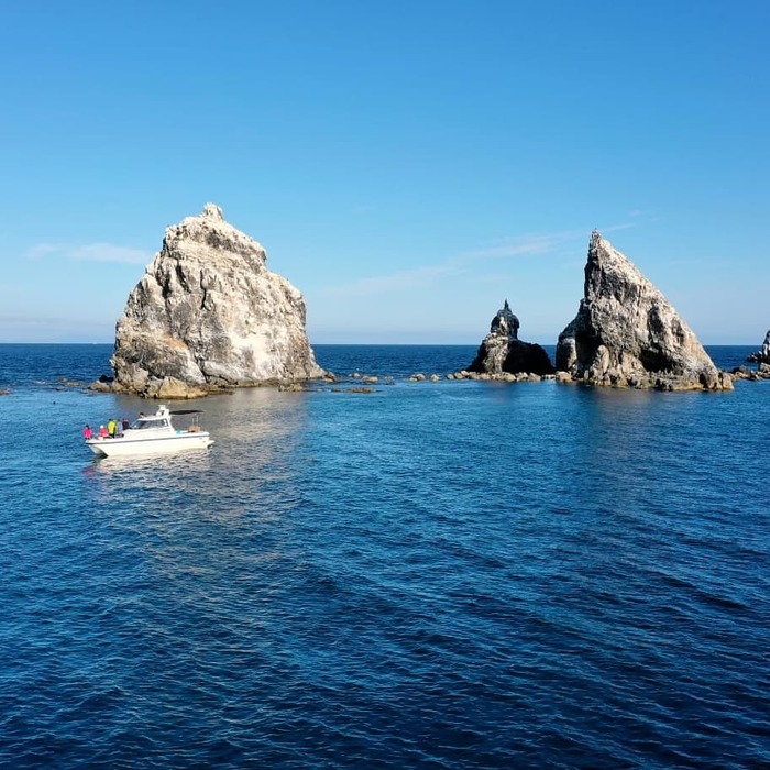 Скалы возвышаются на подводной каменистой гряде. Если умеешь считать, скал этих не четыре, а целых пять или шесть, но, когда смотришь на них не с высоты полета дрона, а с определенного ракурса, две скалы стоят так близко, что сливаются в одну, а шестым "прикидывается" остров Ирецкого, который стоит немного дальше.