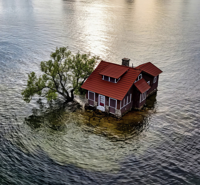 Но полноценным островом это назвать сложно. Это больше похоже на дом, стоящий в воде, чем на остров. К тому же можно обратить внимание, что на представленной фотографии дом находится в окружении воды. Такое происходит в те периоды, когда уровень воды в реке поднимается.