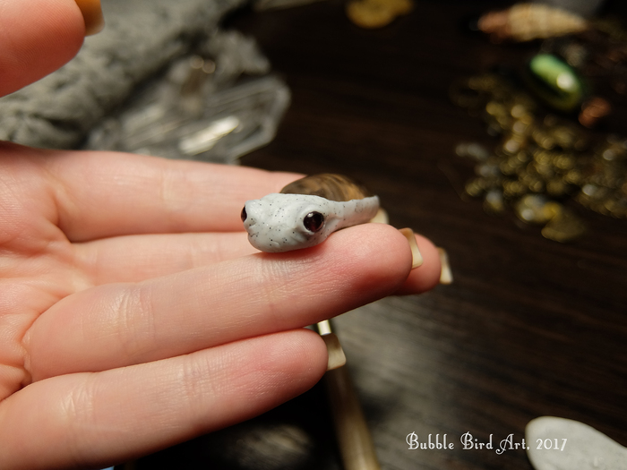 Приступаю к лепке. Сначала хотела сделать глаза из той же полимерки, но вовремя передумала и в итоге подобрала бусинки из граната.