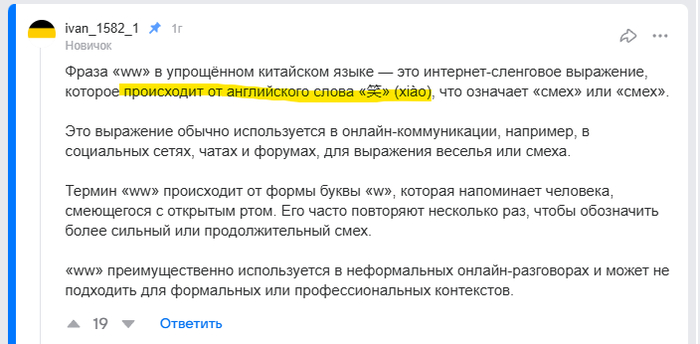 Полез я тут как-то в новопидорском (асуждаю) молодёжном сленге разобраться что такое ww плюс вайб... ну, не разочарован. Вы просто оцените слог, а какая подача... И главное: ответ, скорее всего написан нейросеткой, что ещё более обидно.