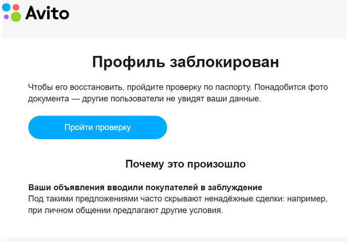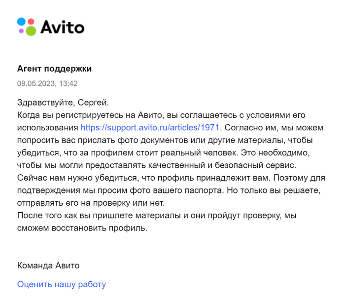 Историй таких я уже прочитал кучу, вам видать настолько нужны паспорта и биометрия, что вас вообще не беспокоит, что люди скоро начнут просто покупать аккаунты у всяких жуликов и положат болт на любые правила авито в принципе.