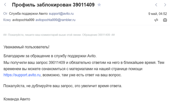 Я исправно платил вам за размещения и продвижение, особенно когда вы заманивали скидками по 70%, я таки сдавался и клал деньги на аккаунт. И теперь вы видать решили, что раз у меня аж 20 объявлений и целых сто непотраченных рублей, то мне будет жалко это терять и можно спокойно блокировать и вымогать паспорт.