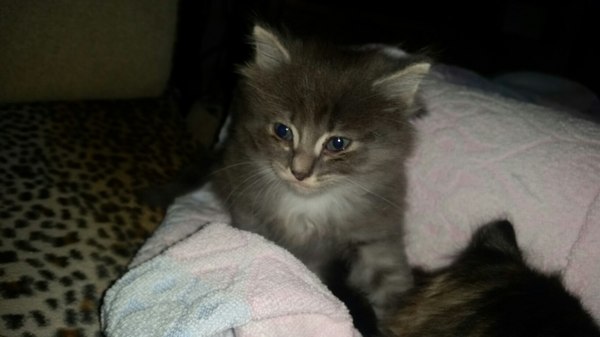 Ну и самый младшенький и самый тихий. Зовут этого дымчатого красавца Бетон (Бетошик). С братьями играется, мурчит громко и вообще во всех отношениях славный парень.